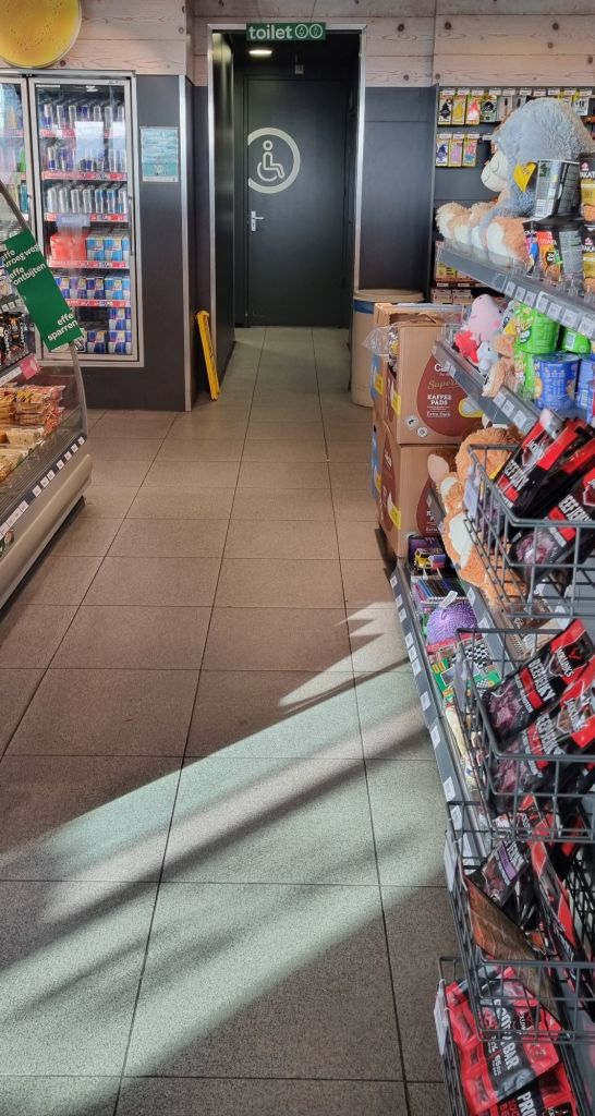 Tijd voor een plaspauze hier op de vluchtstrook. Dus hup, het tankstation in. Want na mijn tweede oogoperatie tegen staar deze week zal ik tijdelijk behoorlijk beperkt zijn in mijn zicht. De nieuwe lenzen sluiten namelijk niet aan bij de oude glazen in mijn bril en nieuwe glazen kan ik pas over zes weken bestellen.