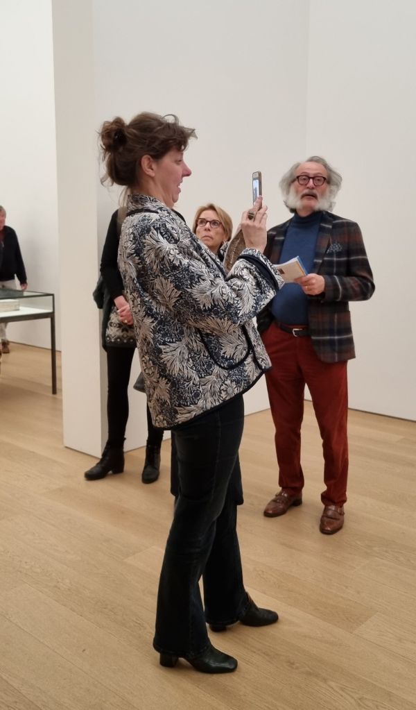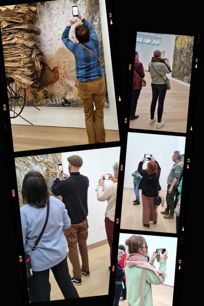 Dus terwijl ik een foto probeer te maken van een schilderij loopt één of andere ouwe tang voorlangs terwijl ze aan het gifkikkeren is dat iedereen maar foto’s loopt te maken. Waarop ik droog als antwoord gaf dat anderen daar dan weer doorheen lopen. Alsof ik er wat aan kan doen dat het zo druk is. U begrijpt beste lezer, bij sommige bezoekers zat de sfeer er goed in. Dat gaf mij wel het idee om fotograverende bezoekers op de plaat te zetten. Zoals u ziet is dat beter gelukt dan foto’s maken van de schilderijen.