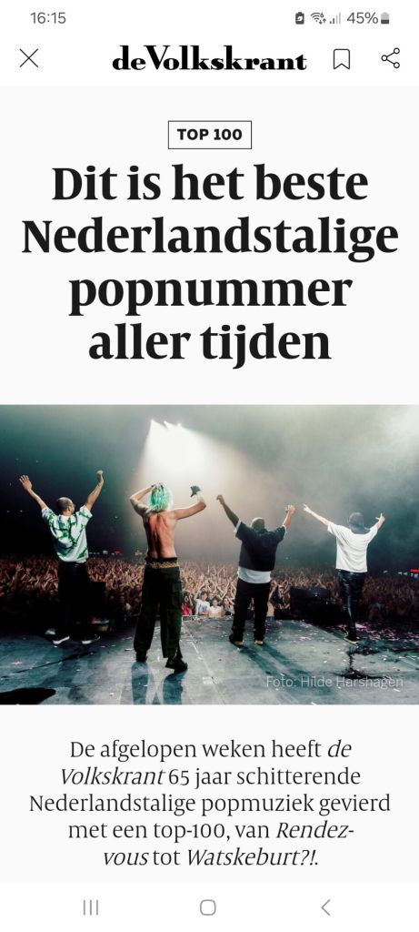 Soms begint een krant aan iets waarvan je van tevoren al denkt “dat kan niet goed gaan”. En inderdaad, de Volkskrant heeft met hun Top 100 Nederlandstalig het overtuigende bewijs geleverd dat het de plank volkomen heeft misgeslagen. Een gedrocht van een lijst met een vrijwel volkomen genegeerd Vlaams potentieël. Om nog maar te zwijgen van het over het hoofd geziene talent van eigen bodem. Één kleine suggestie, ééntje maar, wel eens van de “Osdorp Posse” gehoord beste redactie? Irriteer u niet beste lezer, dat heb ik al gedaan, zie de humor maar in van deze lijst en blijf lachen.
