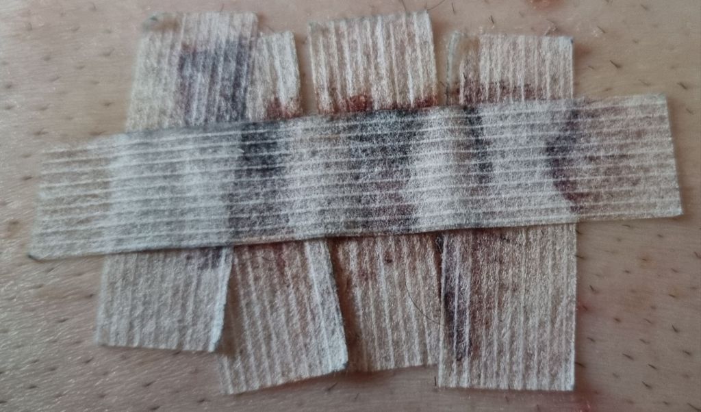 Ik had al ervaring met in- en uitwendige hechtingen. Nu ben ik net van hechtpleisters af, maar geef toch de voorkeur aan het ouderwetse naald en draadwerk. Het zal wellicht tussen de oren zitten maar dat voelt toch meer solide aan. Belangrijkste was uiteindelijk dat de uitslag van het dermatologische onderzoek wat hier aan vast zat goed uitpakte. We gaan weer vrolijk verder. Fijne tweede Pinksterdag!