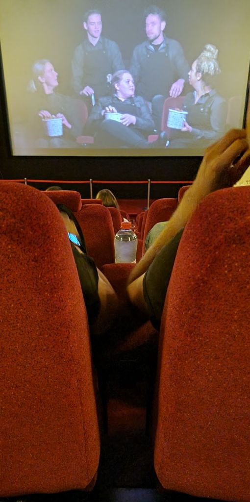 We zaten met dertien personen in de bioscoopzaal. Voor ons drie personen die vrijwel geruisloos popcorn zaten te eten. Dat kan dus wel degelijk zonder geluid dacht ik nog bij mijzelf, dat is prettig. Ik begrijp het niet zo dat iemand eerst tien rondjes met zijn of haar hand in zo’n kartonnen bak moet graaien voordat ze iets eetbaars te pakken krijgen.