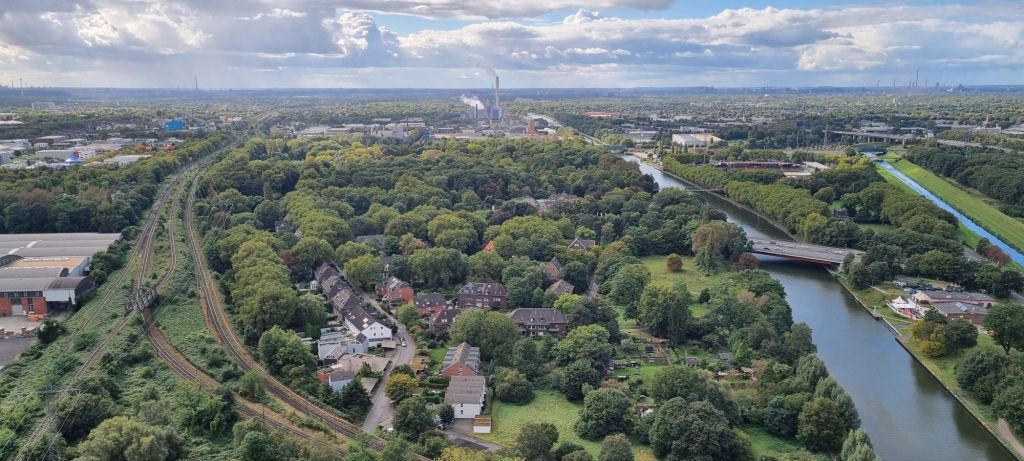 Het uitzicht, boven op de Gasometer in Oberhausen.