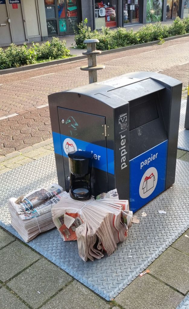Ondertussen was iemand in Heemskerk helemaal klaar met de ochtendwijk van De Telegraaf en heeft de kwaliteitskrantjes bij het oud papier gepleurd. Samen met het koffieapparaat. Als je toch niet meer vroeg op hoeft te staan, heb je die koffie ook niet meer nodig om wakker te worden zal de gedachte zijn geweest? Je kan er maar vanaf zijn.