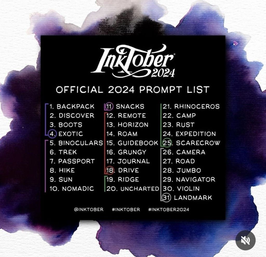 Inktober, het is nog niet begonnen of ik loop alweer achter. Nou moet ik eerlijk zeggen, de laatste jaren kon ik het schema toch al niet dagelijks volgen, en met de huidige studie zal ik keuzes moeten maken. U mag een suggestie achterlaten, ik geef echter geen garantie dat deze ook in inkt omgezet zal worden.