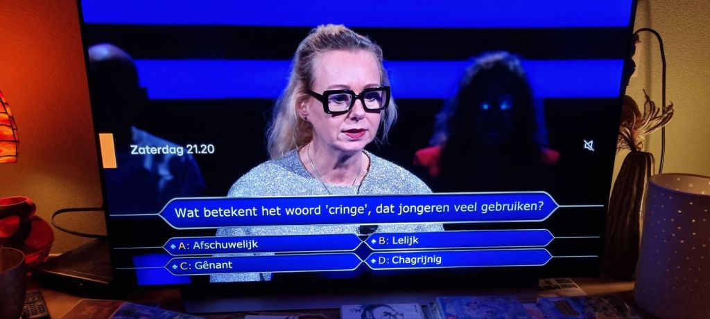 Gisteren gespot op tv in een trailer voor een spelshow met Robert ter Brink, wordt zaterdag a.s. uitgezonden. Ik ga kijken of die demon nog in het publiek zit zaterdag! Misschien ziet die kandidaat ‘m ook wel, moet haast wel met zo’n goeie bril.