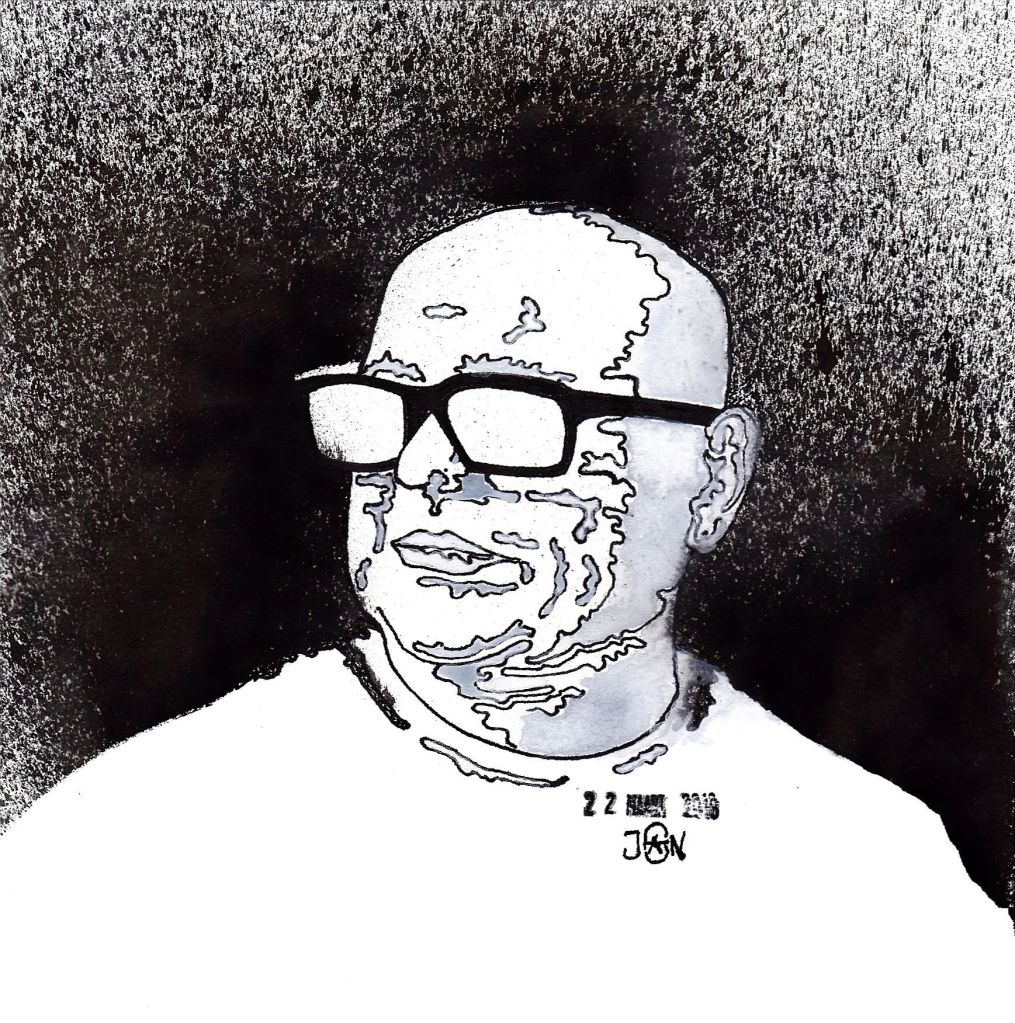 Selfie in inkt op papier Ich werde älter, schaue mich um und komme zu dem Schluss, dass ich immer weniger in diese Welt gehöre.
