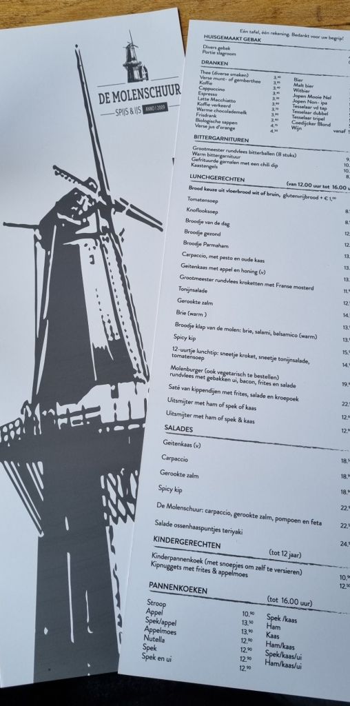 Met een blik op de menukaart van “de Molenschuur” in Koedijk was het in één klap duidelijk wat het moest worden.