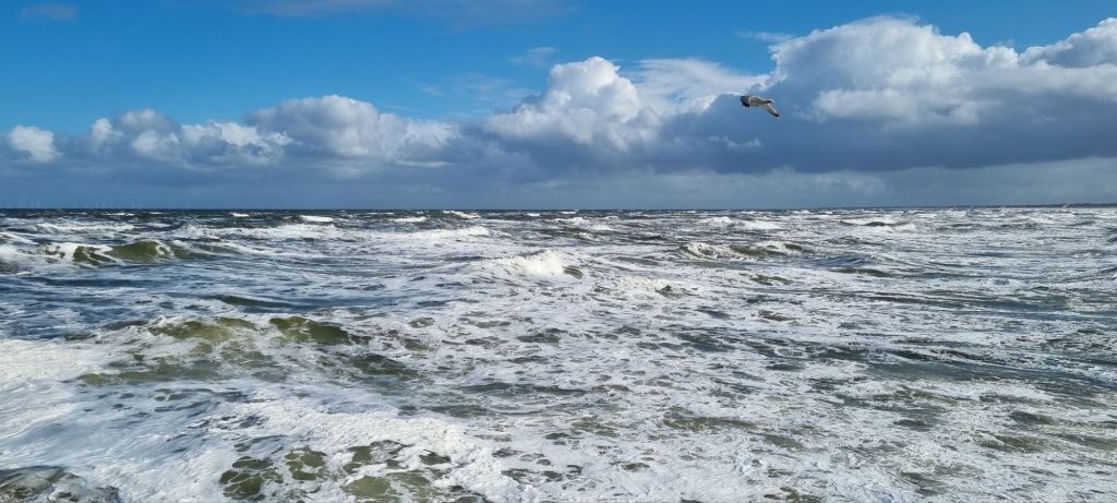 De woeste zee van deze ochtend, het ging lekker tekeer aan de kust.