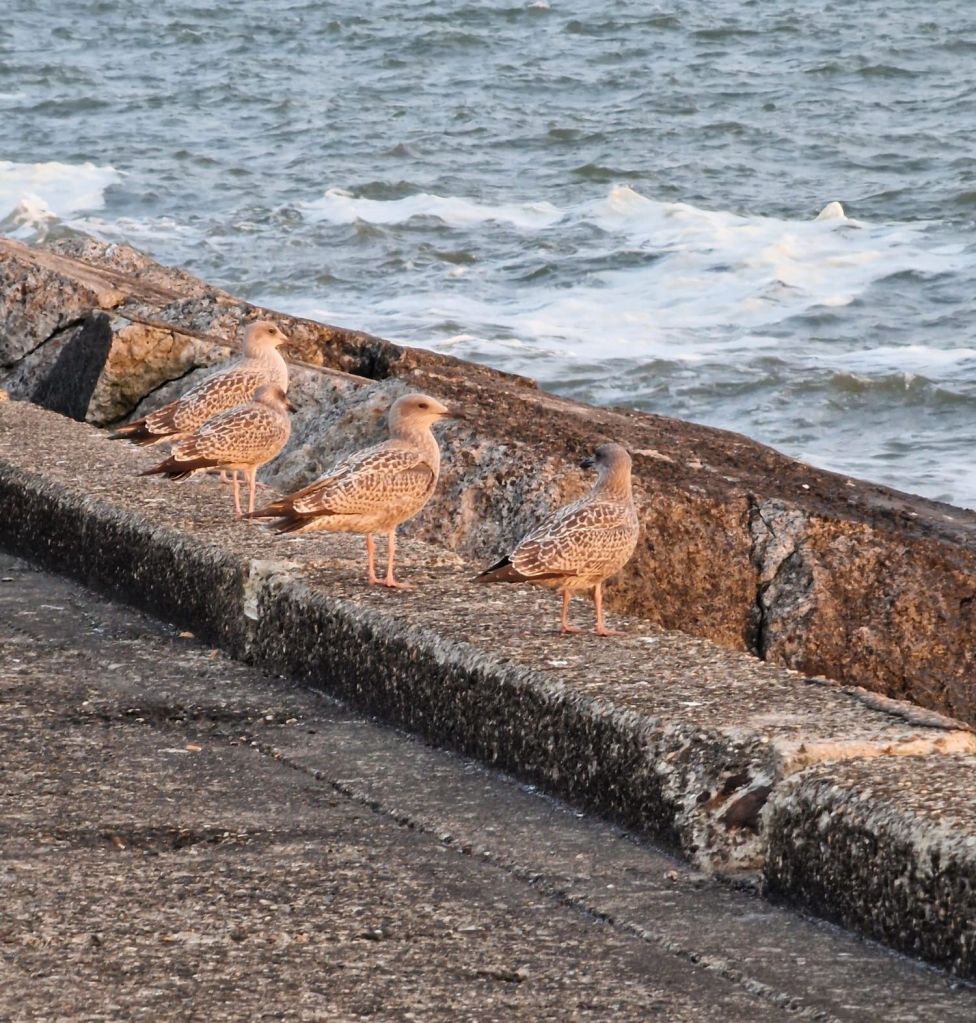 Met een meeuw die lekker in zijn eentje in het rond aan het banjeren is.
