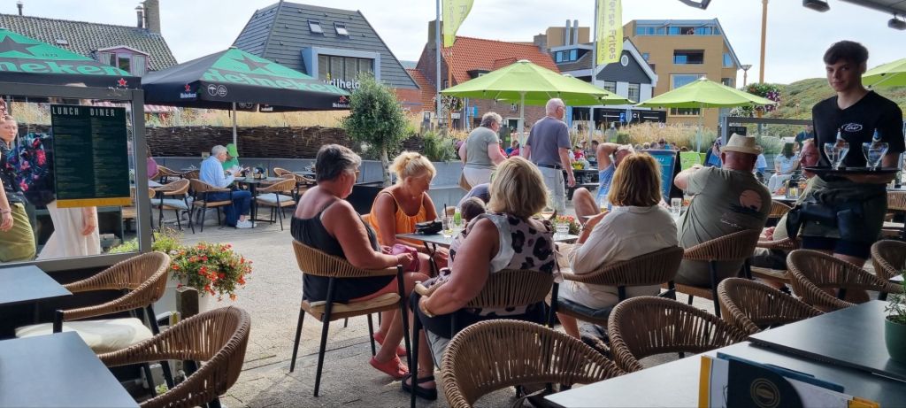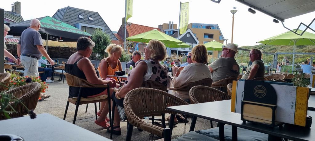 Stoere kerels. De jonge ober kwam ons een ijskoude Affligem Wit 0,0% brengen en dacht er het zijne van terwijl de meeuwen de restanten lunch van de lege tafeltjes aan het roven waren.