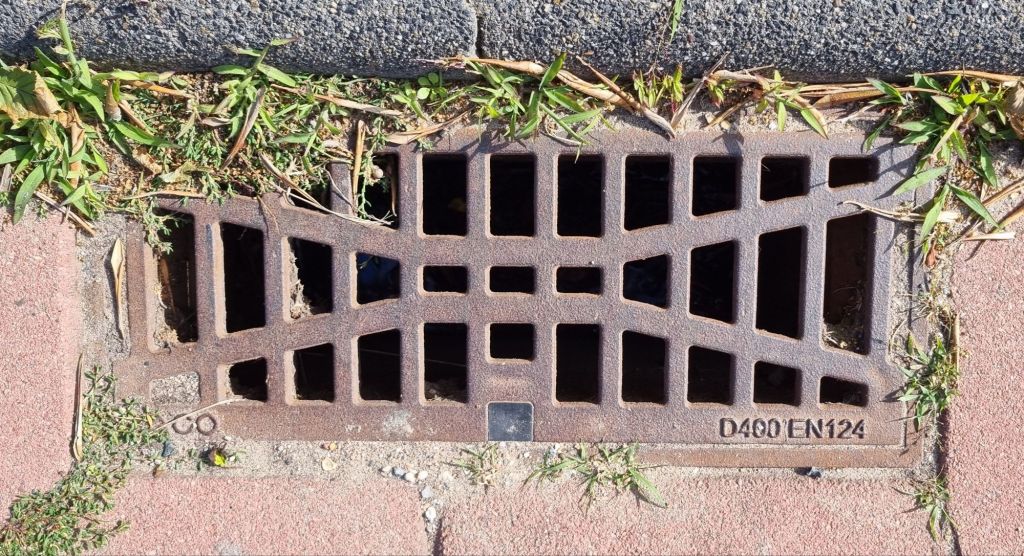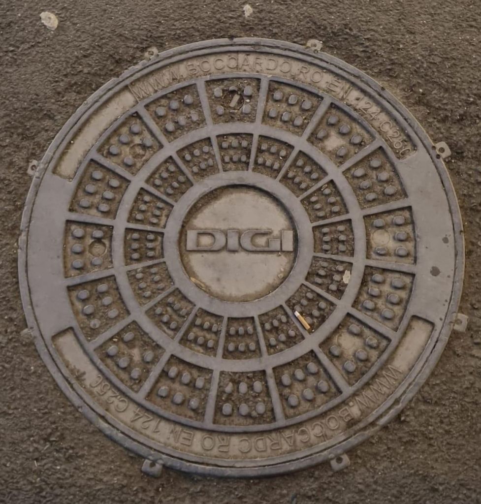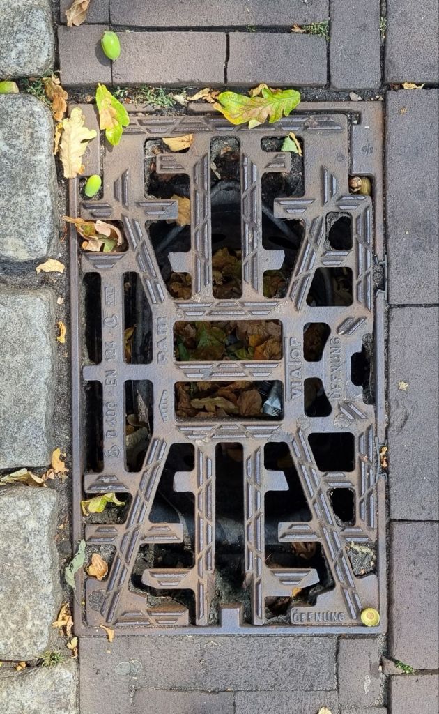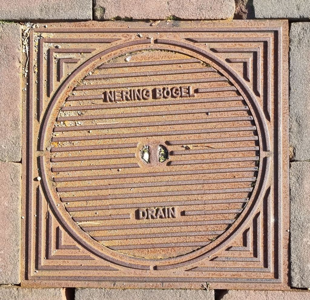 In Schiedam. Die voeten zijn van Em zelf, ik had ze eraf kunnen halen maar daar had ik geen zin in. Kunnen jullie allemaal ook eens zien wat voor schoenen hij aan heeft. Bovendien, het is ook helemaal niet aardig om iemands voeten eraf te halen, die moet je er aan laten zitten. Evengoed, het gaat natuurlijk om de putdeksel, waarvoor dank.
