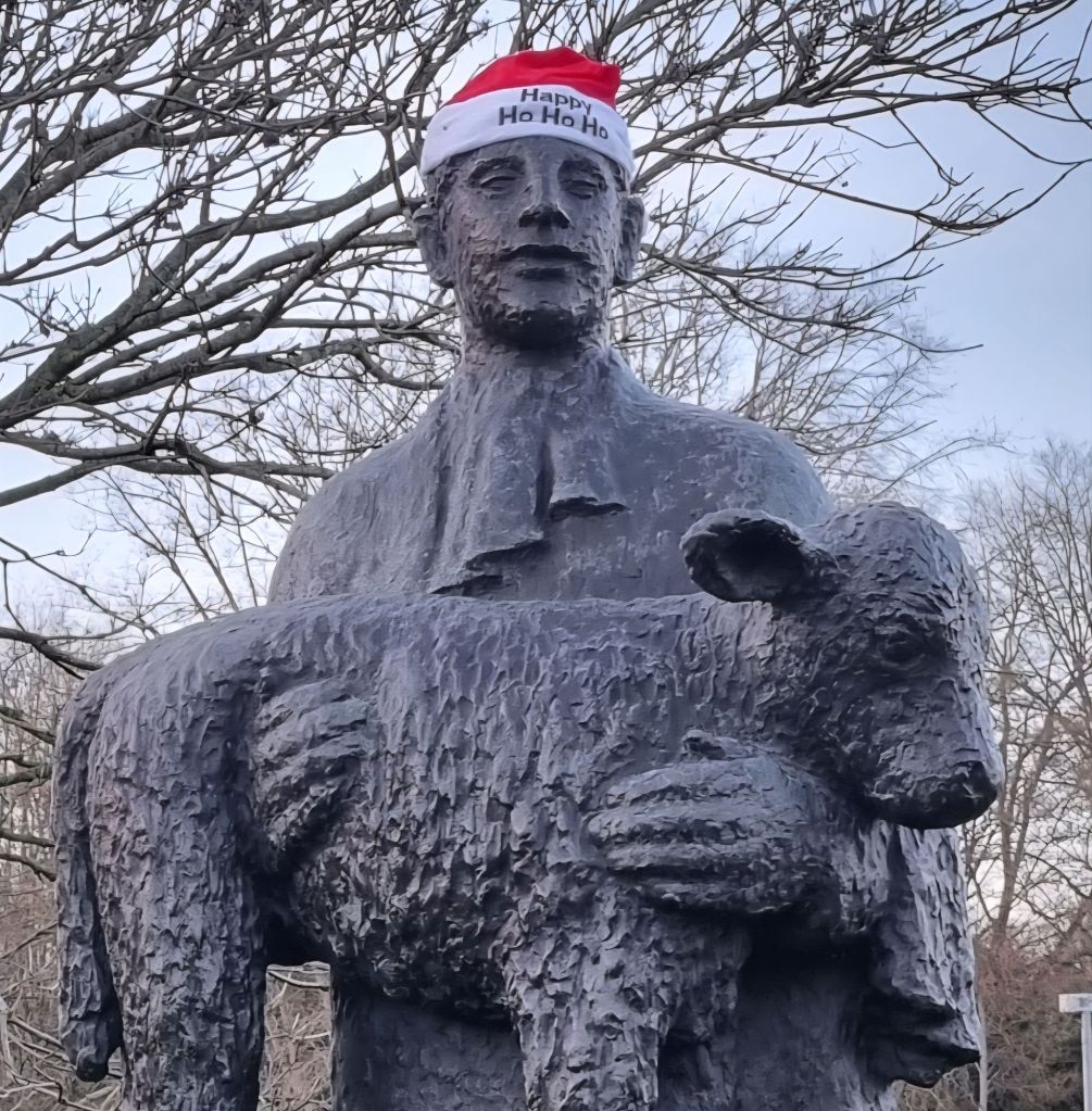 Gelukkig kan je Jezus overal vinden, zo ook in deze kapperszaak. Jawel, geloof het of niet, dit is een interieur van een kapper. In ieder geval, ik weet niet of het de kapper was die onze dierenvriend buiten heeft voorzien van een muts, maar hij is onze vriend Jezus gelukkig niet vergeten! Dat mag natuurlijk ook niet in deze tijd, en hiermee wens ik u allen een prettige zaterdag beste lezers!