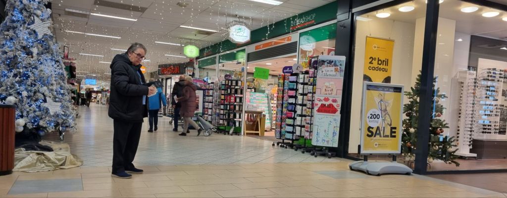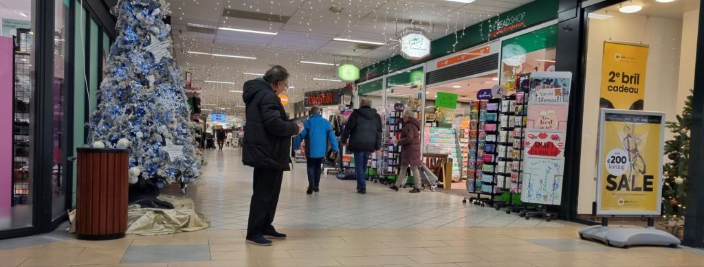 Vertwijfeld stond zij om zich heen te kijken. Drie saucijzenbroodjes in haar handen, de bril iets afgezakt naar het puntje van haar neus. Stond ze op iemand te wachten? Ik heb geen idee. Ze keek steeds weer van links naar rechts, zonder aandacht voor de aanbieding van de opticiën, dus daar ging het niet om. Het hoofd licht voorovergebogen, rusteloos, vol twijfel en verwachting. Zo verstreek de tijd in Broek op Langedijk.