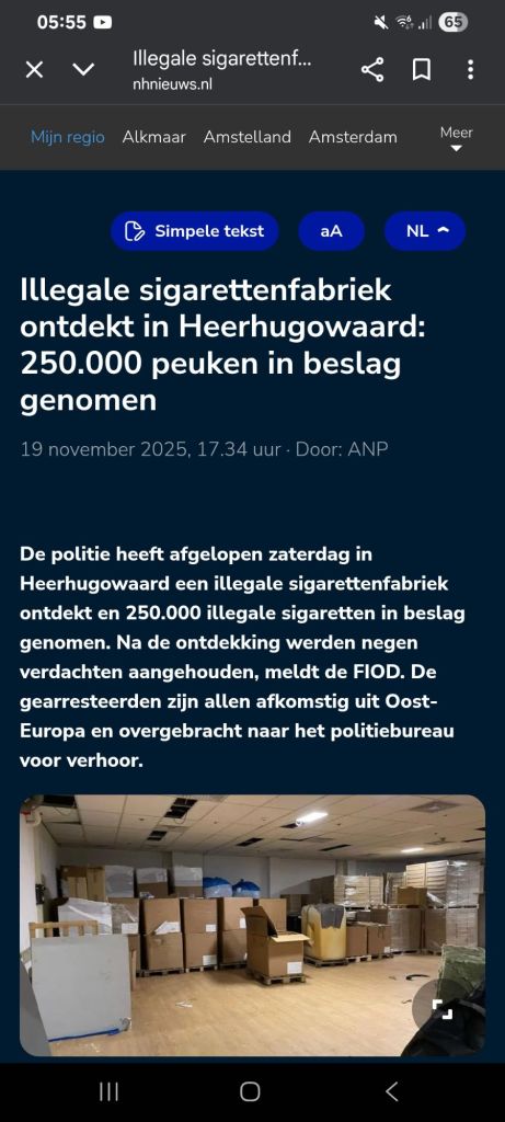 Oud nieuws, ik weet het. Evengoed, de definitie van peuk is een opgebrande sigaret. Waarom zou je 250.000 opgebrande sigaretten bewaren? Oh nee, het zijn toch nieuwe sigaretten. Goed bezig hier in Heerhugowaard. Niet in onze schuur, nee, nee, echt niet!