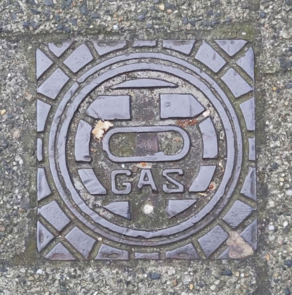 In Schiedam. Die voeten zijn van Em zelf, ik had ze eraf kunnen halen maar daar had ik geen zin in. Kunnen jullie allemaal ook eens zien wat voor schoenen hij aan heeft. Bovendien, het is ook helemaal niet aardig om iemands voeten eraf te halen, die moet je er aan laten zitten. Evengoed, het gaat natuurlijk om de putdeksel, waarvoor dank.