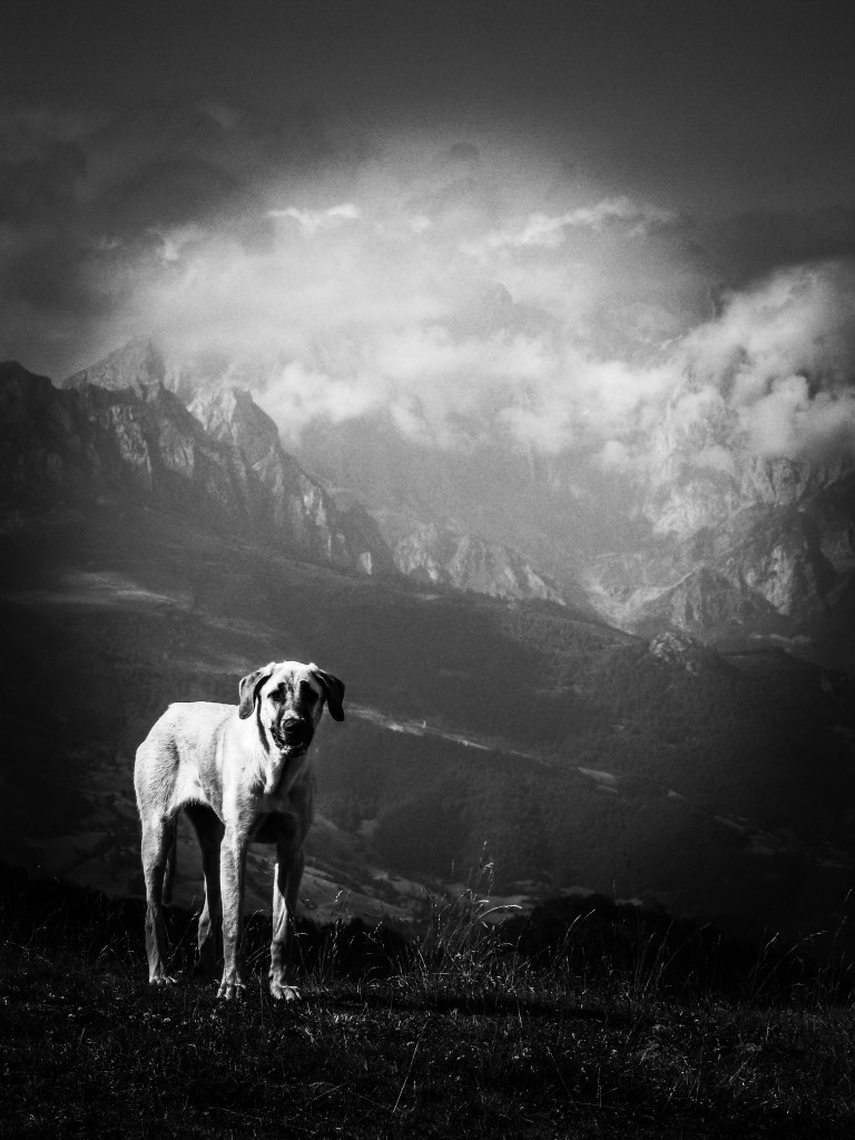 Als je in de bergen van Asturië aan het wandelen bent, kan het zomaar zijn dat je in ene gezelschap hebt. Hij loopt een eindje met je mee zonder iets te zeggen. Dat hoeft ook niet. Een gesprek is niet nodig want hij voelt ook zonder woorden aan als goed gezelschap. Zo plotseling als hij er was stopt hij ineens met lopen. Langs de weg staand staart hij je na terwijl je doorloopt. Als je een paar kilometer verder bent vraag je jezelf in ene af of hij er eigenlijk wel was, of dat je met een zinsbegoocheling te maken had. Wie zal het zeggen?