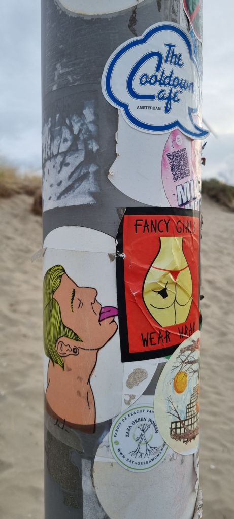 De Volkskrant heeft een oproep gedaan om foto’s in te sturen van de meest bijzondere stickers die je buiten op straat bent tegen gekomen. Rondom de parkeerplaats bij de pier in Velsen Noord kom je heel aparte exemplaren tegen.
