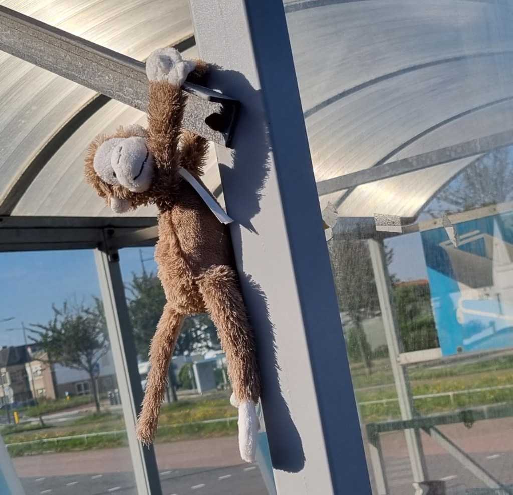 Ergens in Heemskerk is er een aap vermist. Met de aap zelf gaat het goed. Hij geniet met een glimlach van het zonnetje. Het zou zomaar kunnen dat hij niet naar huis wil. Een hangaap bij de supermarkt, dat is weer eens wat anders dan hangjeugd.