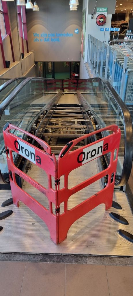 Als we toch met beestjes bezig zijn. Deze duif werd kort terug gespot in een supermarkt in Rotterdam door mijn dochter. Die zal op zoek zijn geweest naar duivekater. Hij zat er op zijn gemak bij in ieder geval.