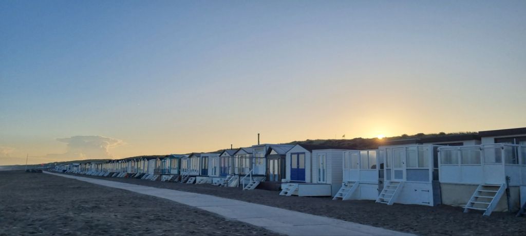 Ik eindig een rondje door het dorp dan ook steevast met een stuk langs het strand. De bewoners van de strandhuisjes zijn er zo vroeg nog niet of zijn nog aan het slapen. Overnachten mag eigenlijk niet in de huisjes, maar ach, u weet wel hoe dat gaat, zie ze maar eens tegen te houden.
