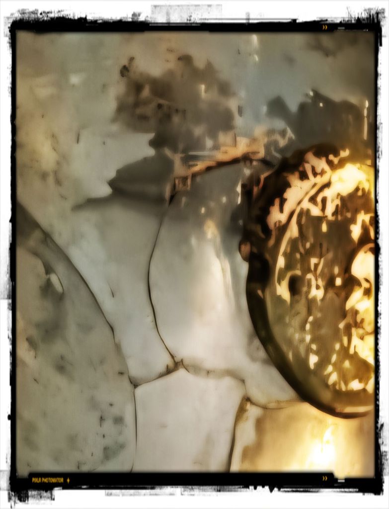 Detail uit een foto van een fles die door archeologen uit zee is gehaald. De fles staat bij museum Kaap Skil op Texel. Ik heb de gratis app Pixlr-o-matic gebruikt voor de bewerking, zeer gebruiksvriendelijk.