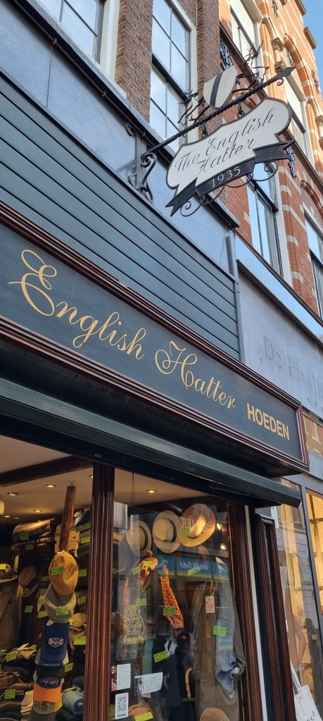 Tijdens mijn studie aura touch healing liep ik er eens in de maand langs. The English Hatter in Amsterdam. Altijd even kijken in de etalage maar nooit naar binnen gegaan. Gisteren is het er na jaren dan uiteindelijk toch nog van gekomen. De zaak bleek veel kleiner dan je van buitenaf verwacht maar bomvol met hoeden, petten en herenmode.