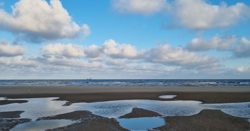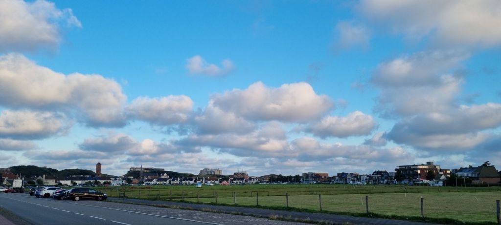 De wind komt uit het zuidwesten, de bewolking hangt boven zee maar op het land, en de pier is het droog en prettig wandelen.