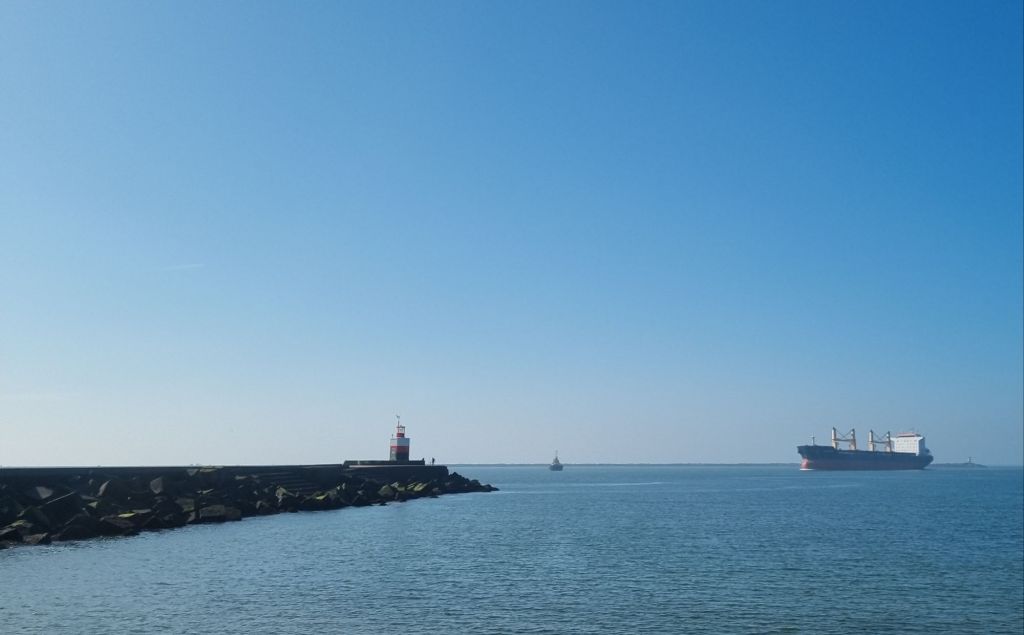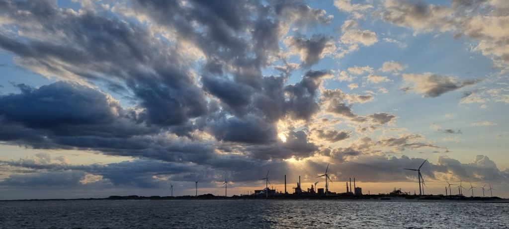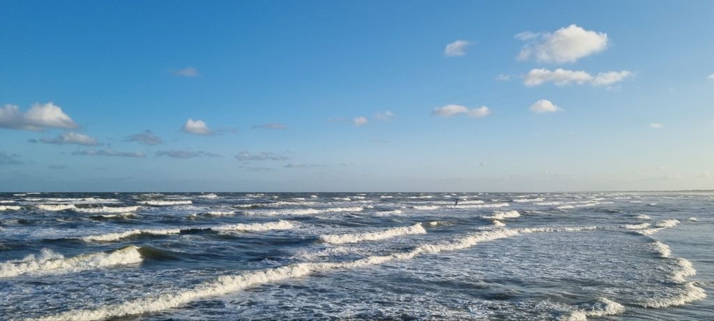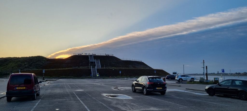 De wind komt uit het zuidwesten, de bewolking hangt boven zee maar op het land, en de pier is het droog en prettig wandelen.
